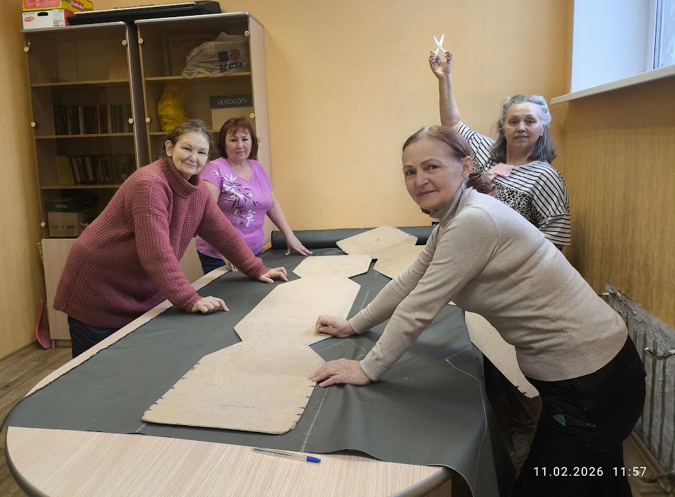 Команда из 12 человек раскроила 137 комплектов пятиточечников. Это самое малое, что мы можем сделать здесь для тех, кто сейчас на фронте. Благодарим всех неравнодушных пенсионеров за помощь в срочной работе: Елену Белоусову, Ольгу Игашеву, Светлану Чурсину, Галину Новикову, Ольгу Федосову, Татьяну Малаенко, Светлану Чернову, Надежду Гончарову, Людмилу Трудолюбову, Светлану Русакову, Анну Панькову, Веру Рябову. А также выражаем благодарность Евгению Мясникову, председателю «Всероссийского общества инвалидов» за предоставление помещения. Все вместе мы делаем общее дело, приближая победу и заботу о наших бойцах, о тех, кто на передовой.