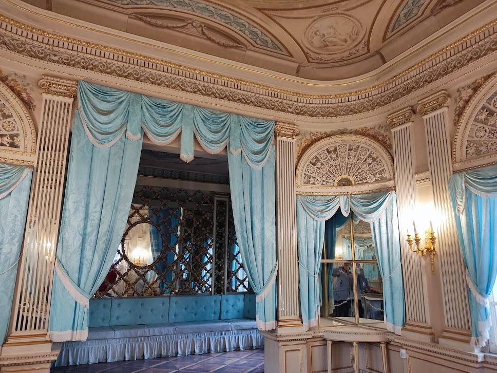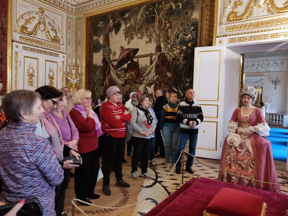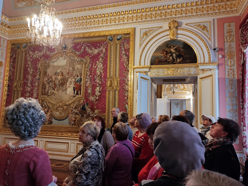 Мы посетили Большой Павловский дворец. Он уникален и похож на средневековый замок, присутствует эффект рыцарской романтики. С первой минуты нас ждали сюрпризы и удивительное театральное представление. На пороге замка нас встретили прекрасные Фрейлины: Наталья Станиславовна и Полина Александровна и провели двумя группами по величественным залам дворца. Они окунули нас в эпоху правления Павла I, мы узнали любопытные факты из жизни Императорской семьи, услышали придворных музыкантов. Изюминкой экскурсии стала аудиенция у Императора Павла I с Государыней Императрицей Марией Федоровной. Игра актеров восхищала!