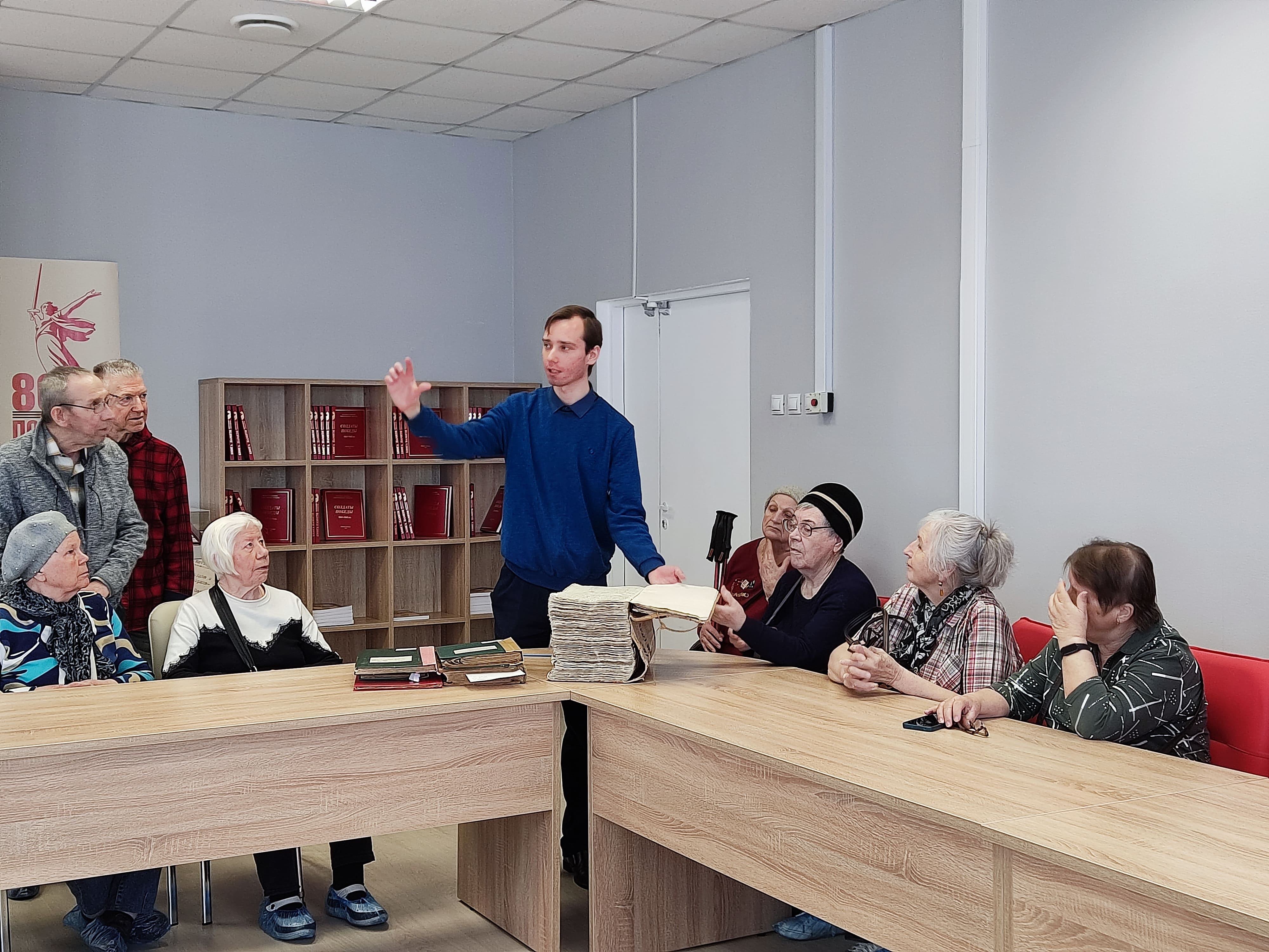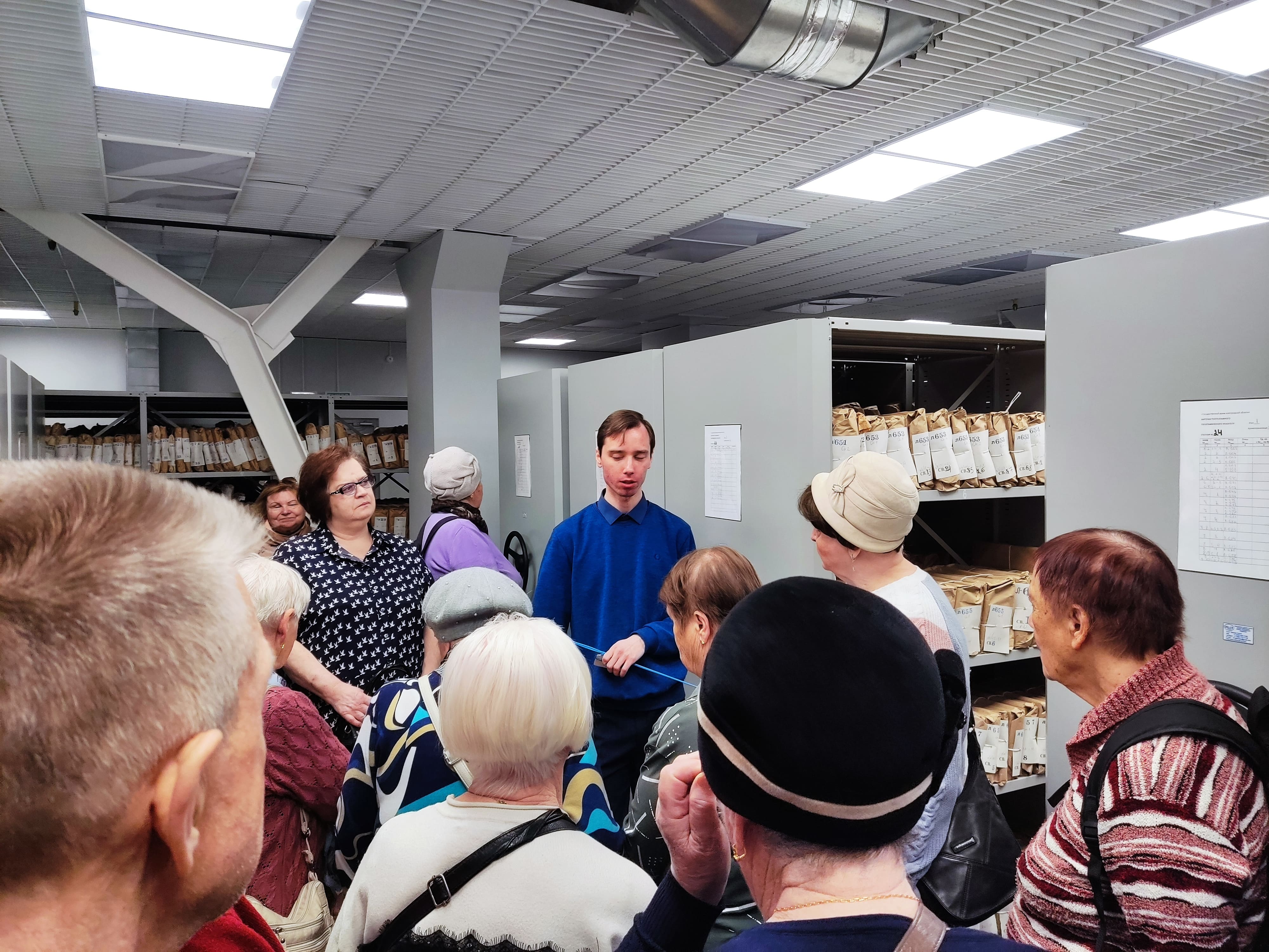 22 апреля старшее поколение «Союз пенсионеров России» Новгородской области побывало на экскурсии в Государственном архиве. Пенсионеры посмотрели современные архивохранилища, различные виды документов и узнали особенности их хранения. В одном из них широкоформатные документы уложены в специальные ящики, в другом стандартные папки хранятся в отдельных коробках и связками, на специальных стеллажах. Великий Новгород — один из центров Древней Руси и православия, многие архивные документы здесь церковные, первые датируются XV веком. Здесь берестяные грамоты, рукописные письма российского императора Николая I местному главе и тысячи документов времен Великой Отечественной войны. Столетиями все это бережно хранится в архиве.