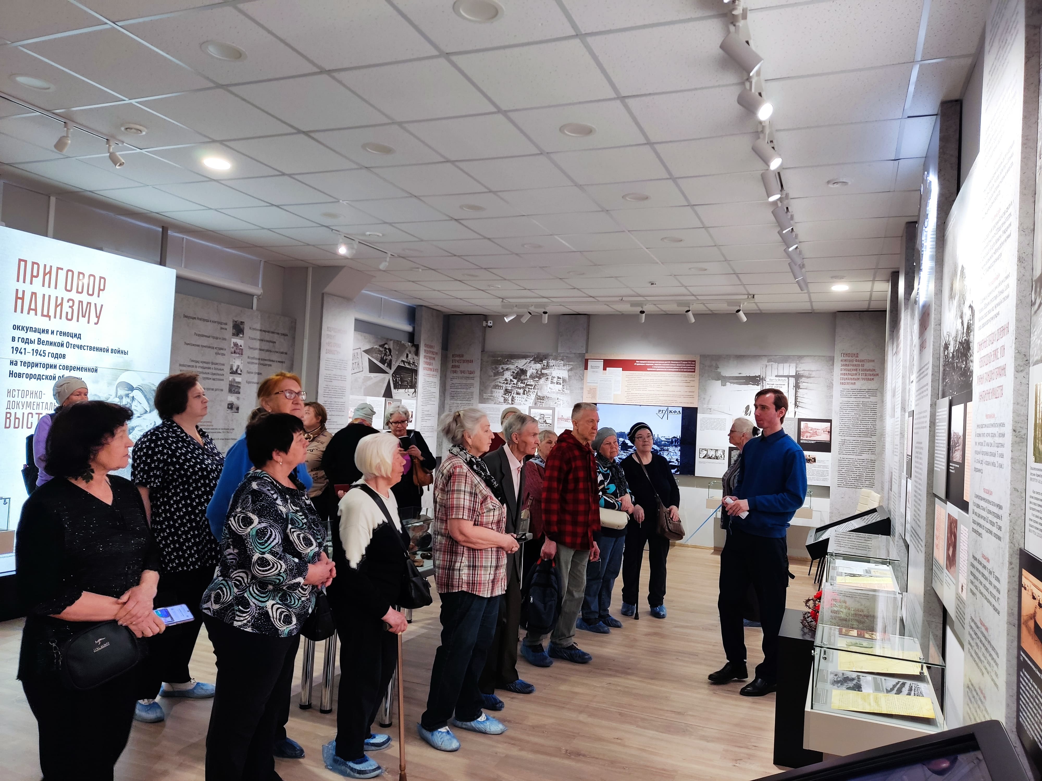 В выставочном зале архива участники экскурсии увидели историко-документальную выставку — «Приговор нацизму. Оккупация и геноцид в годы Великой Отечественной войны 1941-1945 годов на территории современной Новгородской области». Она направлена на закрепление исторической правды о зверствах нацистского режима и увековечение памяти жертв геноцида советских граждан, в том числе тех, кто пострадал на новгородской земле от германских агрессоров и их сообщников.