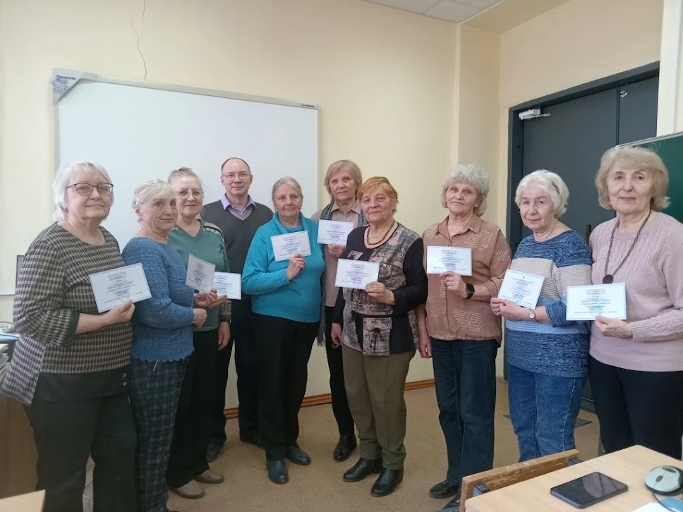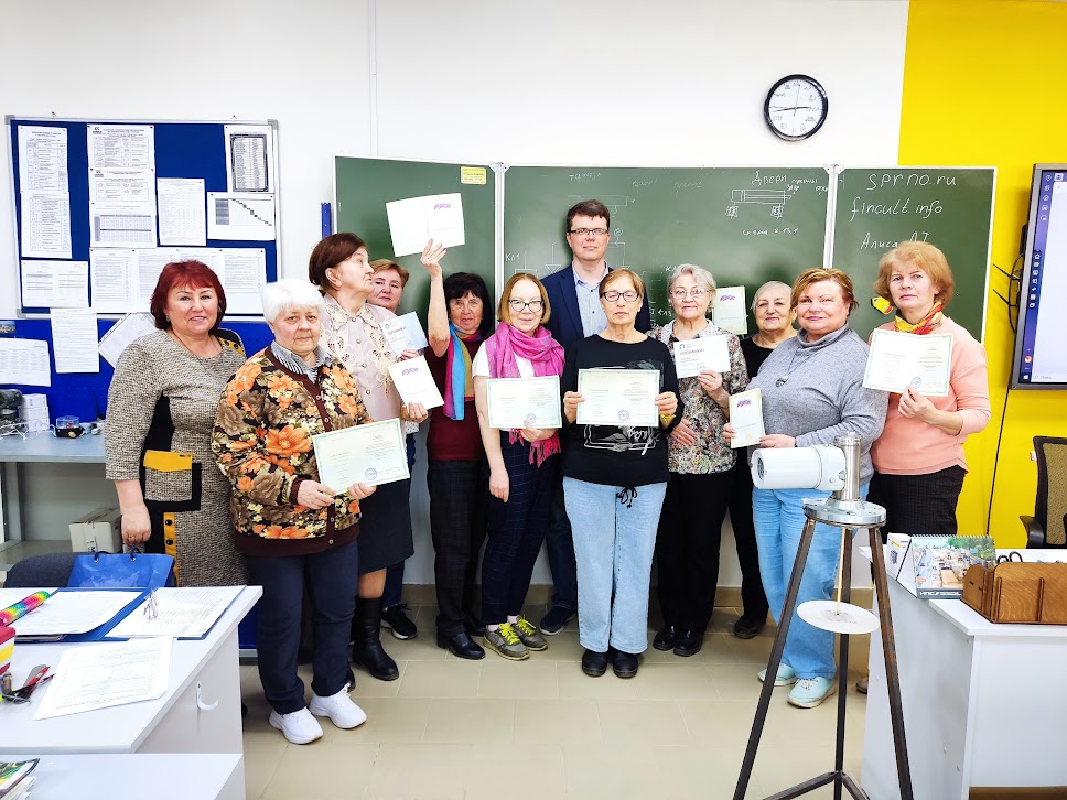23 апреля региональное отделение «Союз пенсионеров России» Новгородской области вручило последние десять сертификатов об окончании курсов «Основы компьютерной грамотности» в Химико-индустриальном техникуме. Самые теплые слова благодарности выпускники высказали своему опытному преподавателю Наталье Юрьевне Степановой за полученные знания, а также поблагодарили общественную организацию за проведение этих курсов. Занятия проходили в дружественной атмосфере, что позволило каждому участнику почувствовать себя уверенно и комфортно. «Я всегда мечтала научиться пользоваться компьютером, он казался мне чем-то сложным и непонятным, а теперь я с удовольствием им пользуюсь, могу найти любую информацию в интернете», — рассказала Лидия Григорьева.